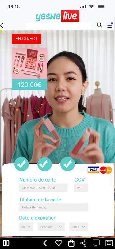 C'est le télé-shopping 2.0 car vous avez la possibilité d'interagir directement avec vos acheteurs et ceux-ci peuvent simultanément consulter les produits présentés, ajouter des articles à leur panier et, enfin, finaliser leurs achats sans quitter le Live.